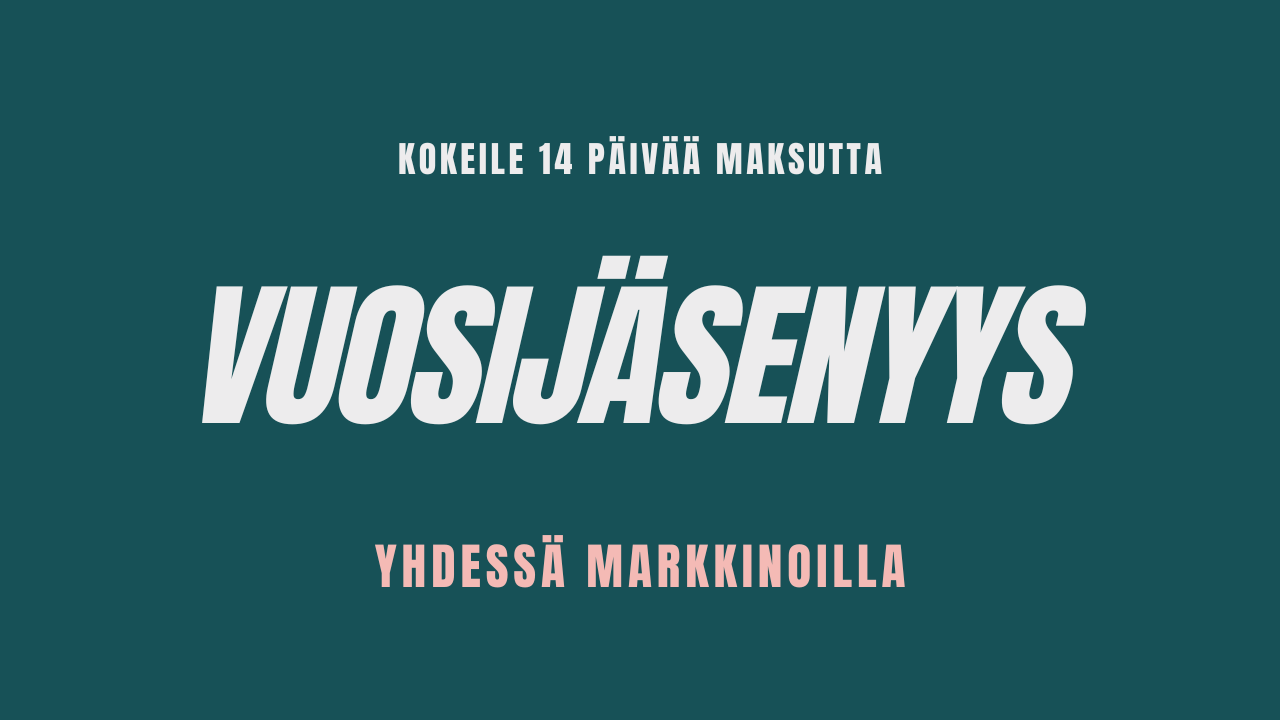 Tämä jäsenyys sisältää kaiken Yhdessä Markkinoilla -palvelun ja yhteisön sisällön 12kk ajaksi. Kokeile riskittömästi 14 päivän ajan.