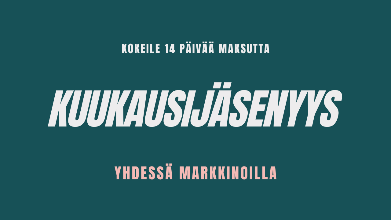 Tämä jäsenyys sisältää kaiken Yhdessä Markkinoilla -palvelun ja yhteisön sisällön. Voit kokeilla jäsenyyttä 14 päivää maksutta ja jatkaa sen jälkeen käyttöä kuukausihinnalla.