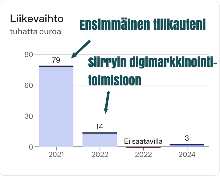 - Tein 80k liikevaihdon ensimmäisena freelancer-markkinoinnin tilikautenani